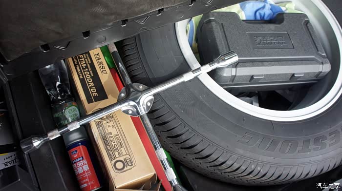 工具箱小巧的尺寸,正好可以放到咱们备胎坑里。用床单把工具箱包裹上,可以防止碰撞异响,也保护备胎轮圈。