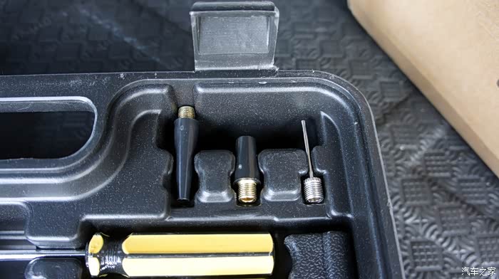 右上角配有三个不同规格的打气嘴。喜欢运动打球的车友们可以给篮球、足球充气啦