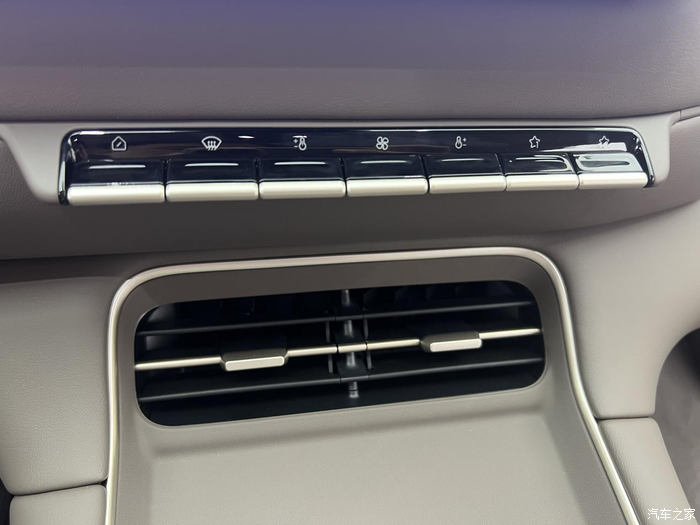 中控物理按键!手感确实很不错,对于我这种油车用户就算换电车也还是需要遮阳的按键的,不然开车时候操作屏幕挺容易分心的。而且我看这排按键最右边两个还是自定义功能,也方便用户个性化设定。