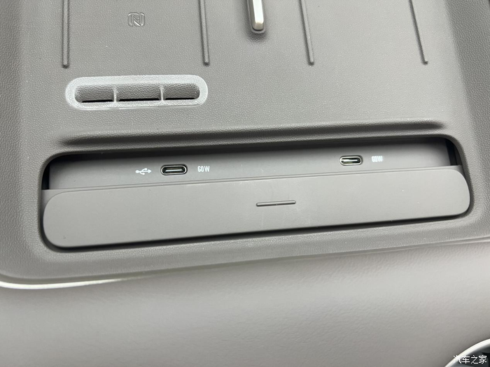 除了50W风冷快充以外,这次还把Type-C接口的拓展坞安排上了,小细节啊!中控台这边整体性不错,拓展坞平时不用把盖板推上去就好了。
