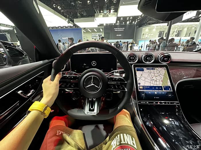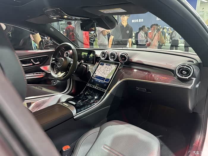 坐进车内,家族式的12.3英寸中控屏以及11.9英寸全液晶仪表,车机系统拥有更多驾驶相关的AMG专属功能。同时,其中控台被覆盖丰富的碳纤维材质,搭配多处的红色缝线以及AMG运动座椅,提升车辆运动感