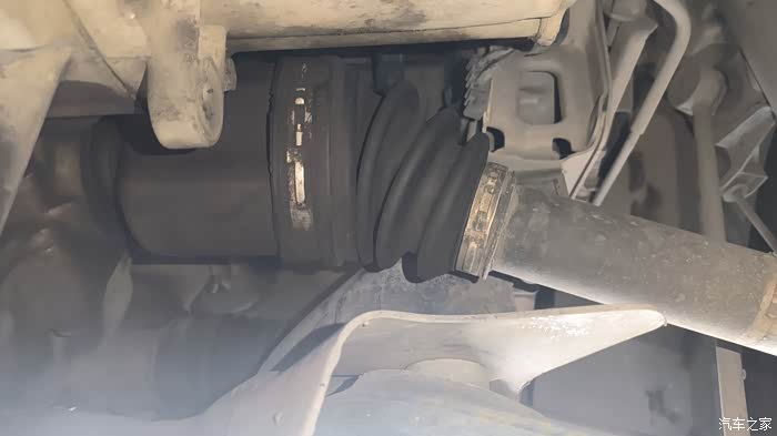 两边的后桥胶套都老化开裂,应该还能再继续工作一段时间