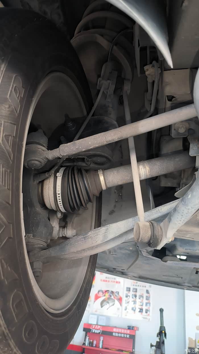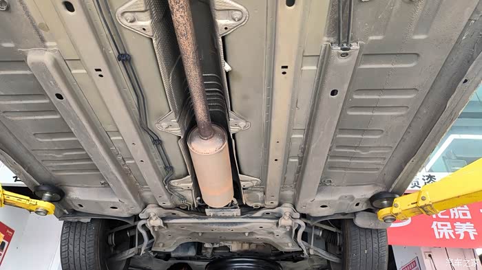 排气管虽然有锈蚀痕迹,但处于合理范围,半轴球头看似更换过。