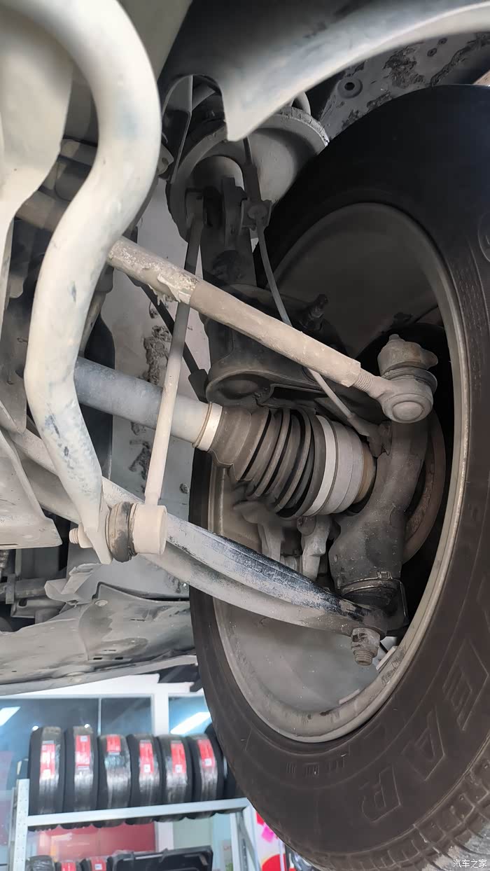 目测左后悬挂一直坚持服役没更换过,老化情况得拆下来才能检查,这次先放过。