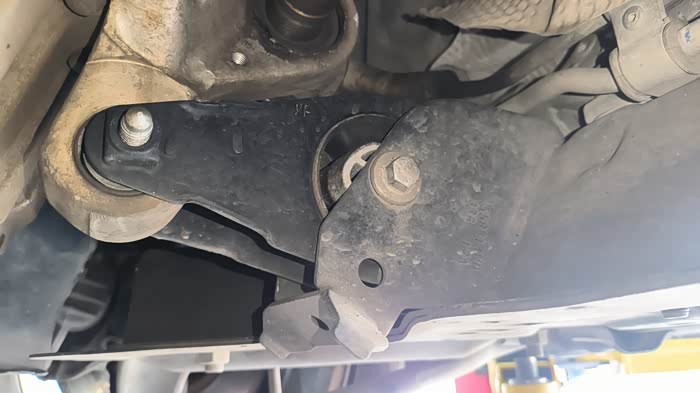 发动机下部的铁支架更换过但铝支架胶套开裂,发动机不抖先不管它