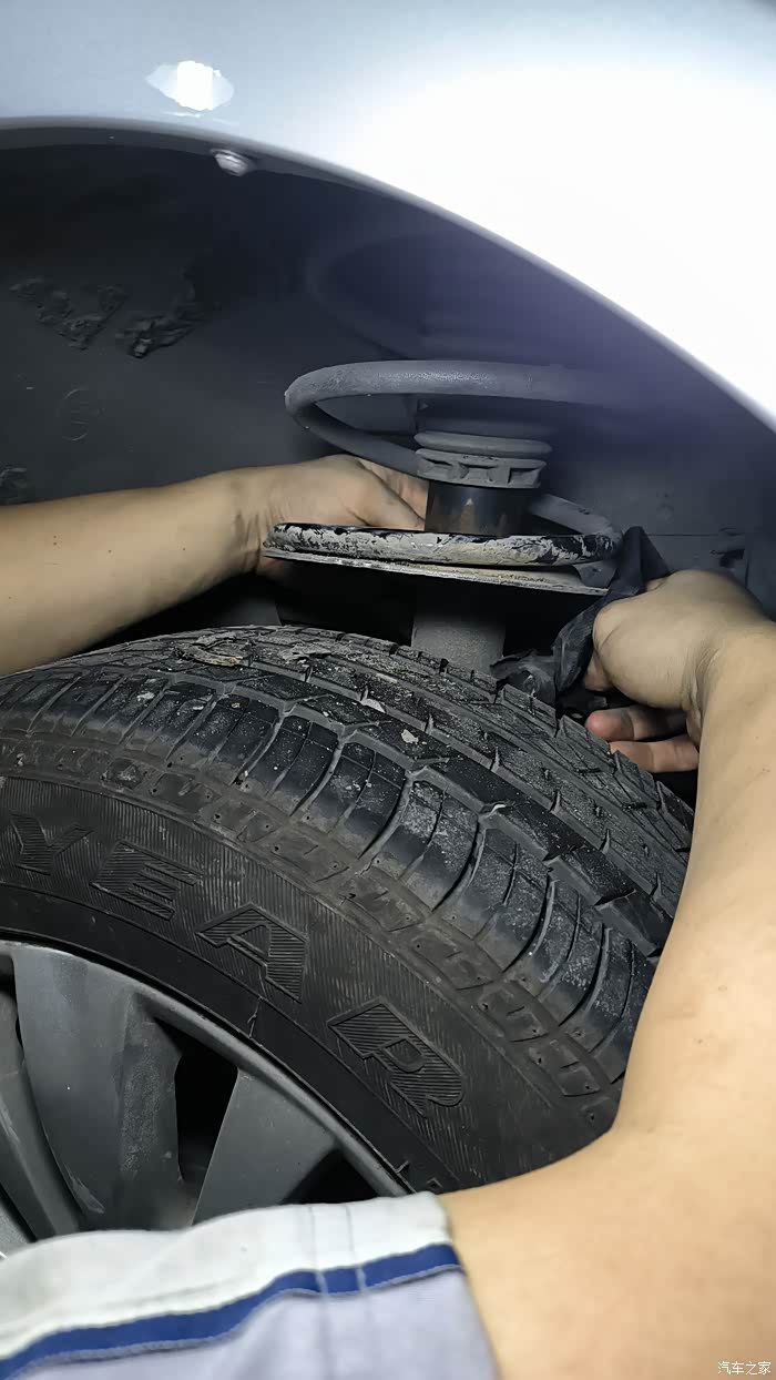 塔顶被集雨板挡住了,从底盘部位看过去只能检查个寂寞。。弹簧护套老化开裂,准备去4S店碰碰运气。