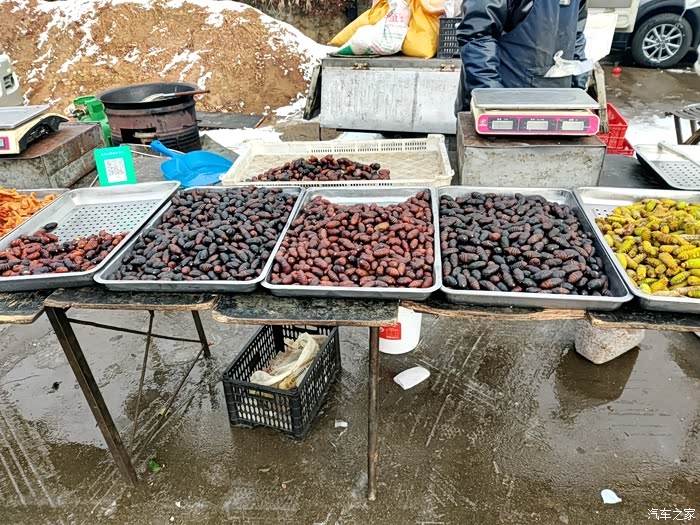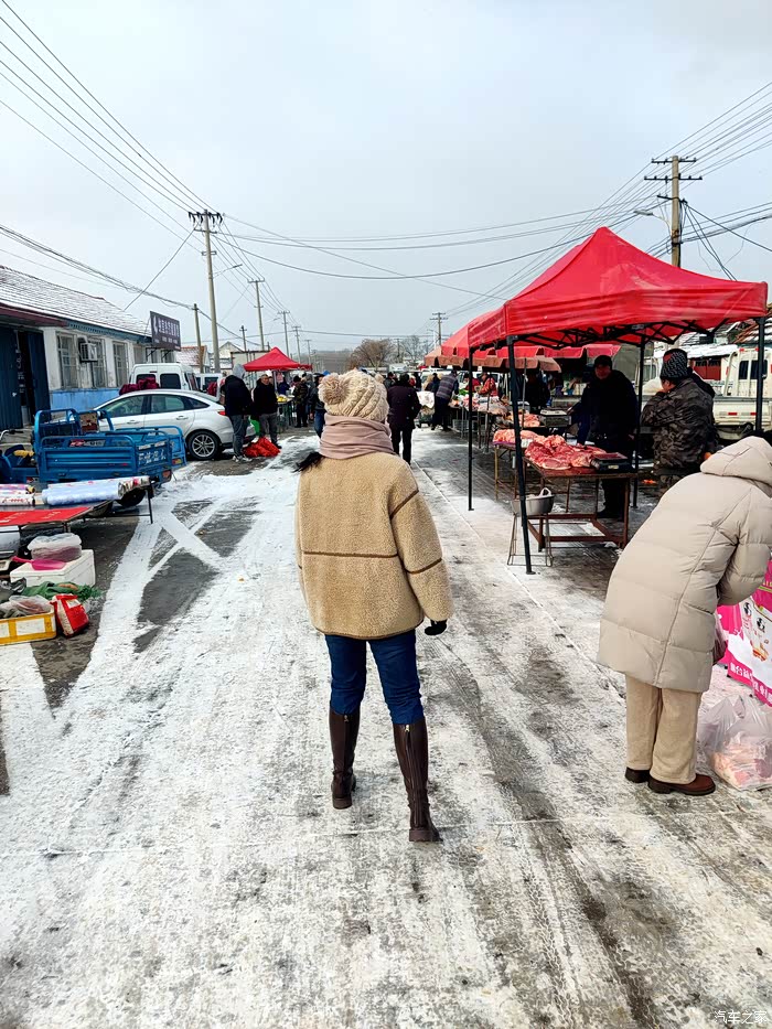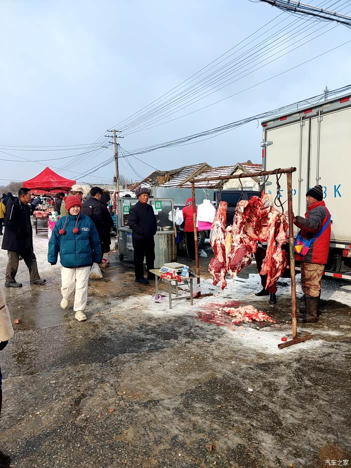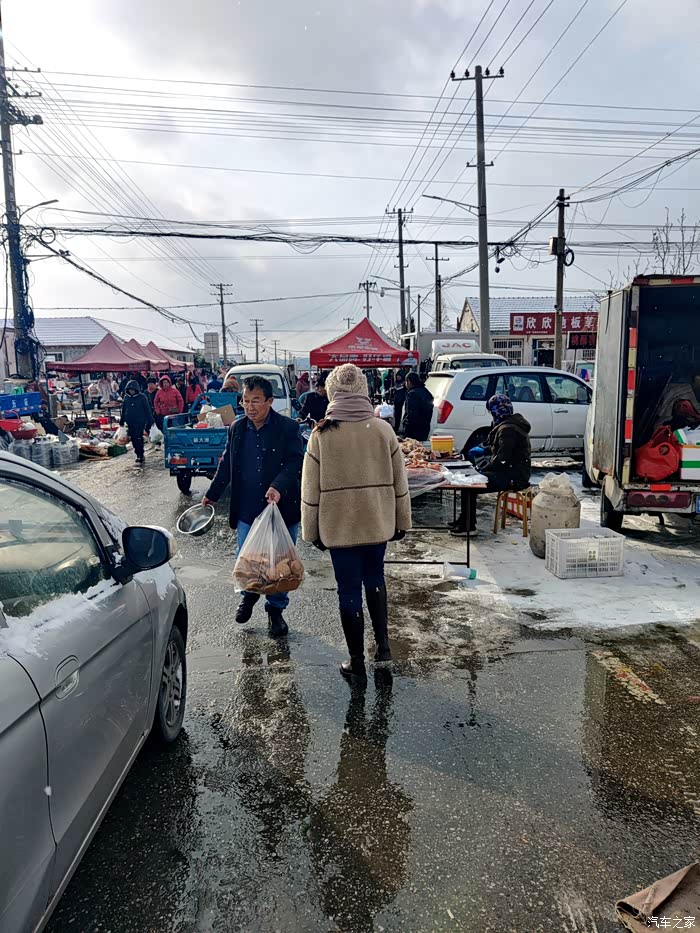 早饭后我把车子开去充电,然后和老婆去附近的大集看看。天空依然飘着雪,大集上人头攒动,各种牛羊猪肉、蔬菜水果,还有蚕蛹海鲜。赶农村大集,感觉很新鲜,各种买买买,牛肉、排骨、虾仁、蔬菜,陪儿子的日子,还要给孩子改善生活,估计这是每个做父母的一致想法吧。