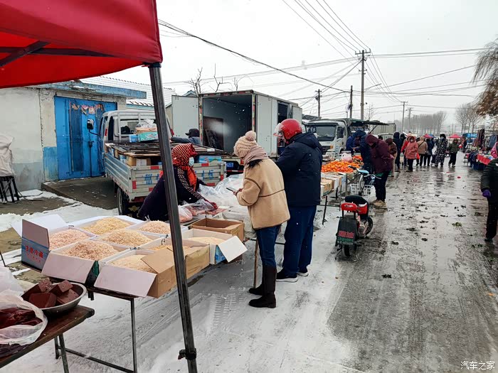 据说这是烟台的第五场雪了,去往镇上赶大集。