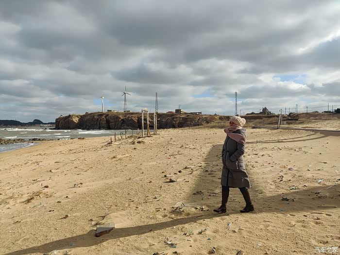 冬日的沙滩没啥人,只有我们任海风肆虐。
