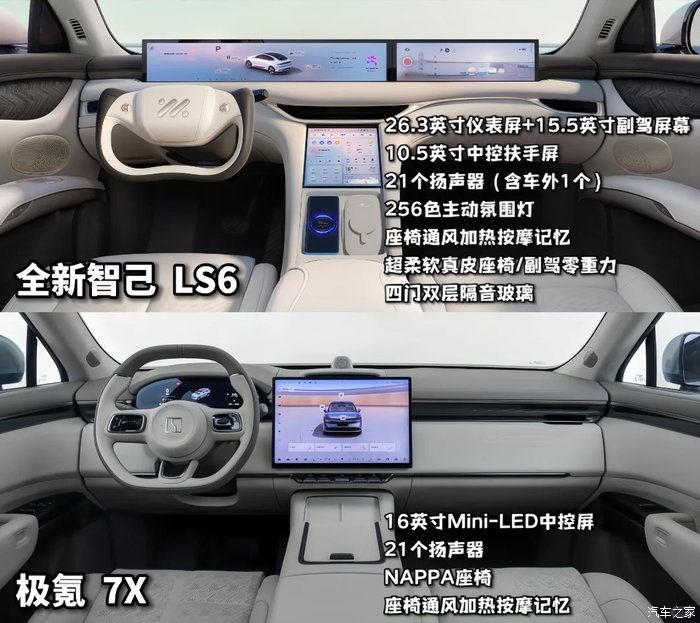 今天来给大家全方位对比一下极氪7X和全新智己LS6!