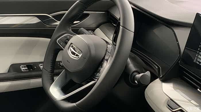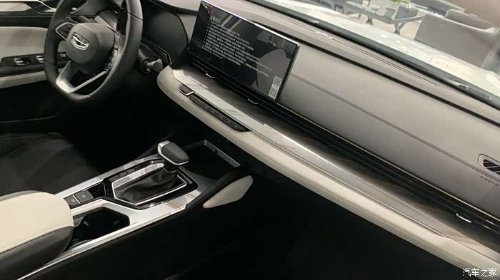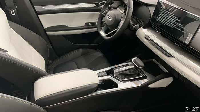 说回车内,这次内饰的选色上是新的丹青配色,非常的有气质,整个内饰在钢琴烤漆以及激光雕刻等多重顶级工艺,将新车的档次感发挥到极致。设计方面整体延续了帝豪的内饰设计,中控采用一块大尺寸的悬浮式屏幕,并且仪表盘也是采用了液晶设计,科技感十分的强烈,而且贯穿式的长条形出风口,配合大面积皮革包裹的中控台很有质感,座椅也是采用撞色设计来加强时尚气息。