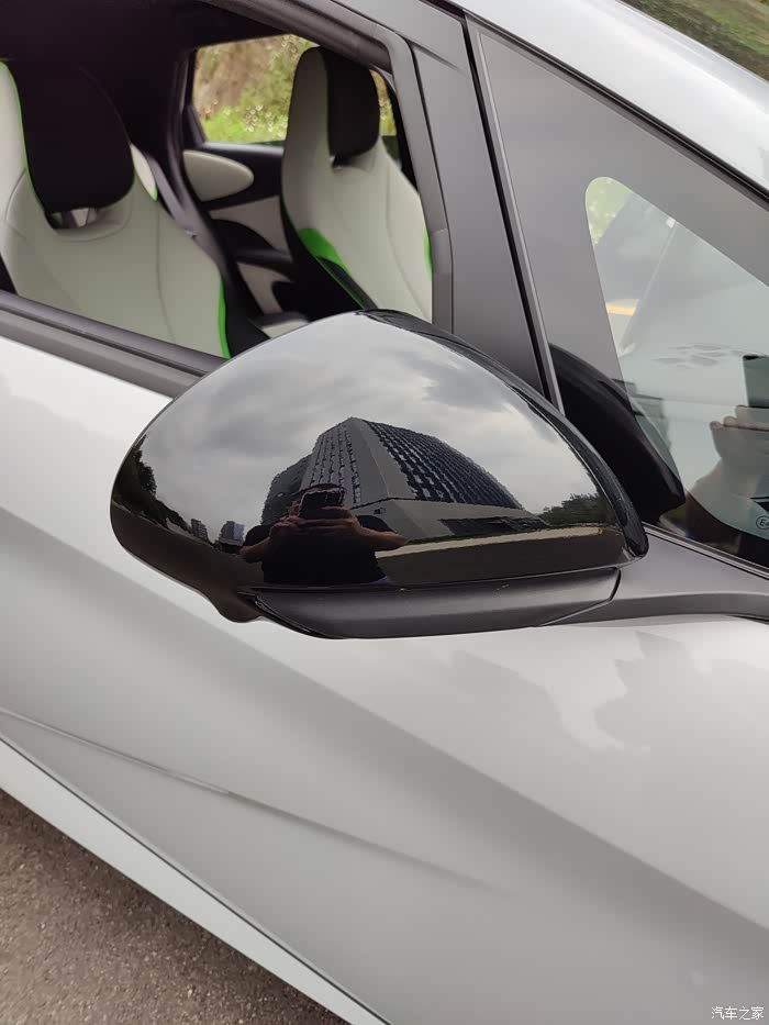 选的绿色,提车后就到贴膜店把外观绿色部分贴黑色膜处理。后视镜贴亮光黑,前后保险杠还有车门贴亚光黑,效果还满意。