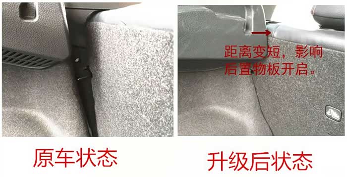 这个后排座椅能改善一定的座椅倾角,但同时带来的问题就是影响了后置物板的开启,座椅确实靠后移动了,但也顶住了后置物板,导致每次开启后备箱都会卡住后置物板。