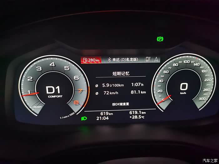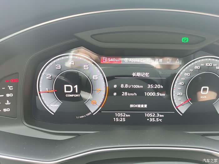 目前行驶1100公里,其中200高速,其余市区,长期记忆8.8,纯高速表显5.5左右。这么大个车这个油耗已经满意了。