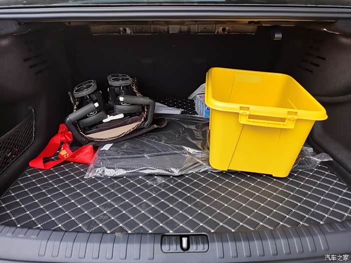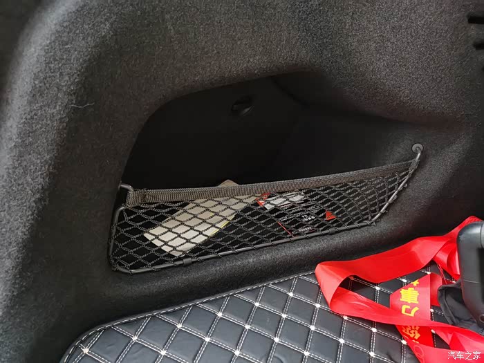 后备厢容积:后备箱轿车里已经算大的了,左边一个网兜,右边有个电源