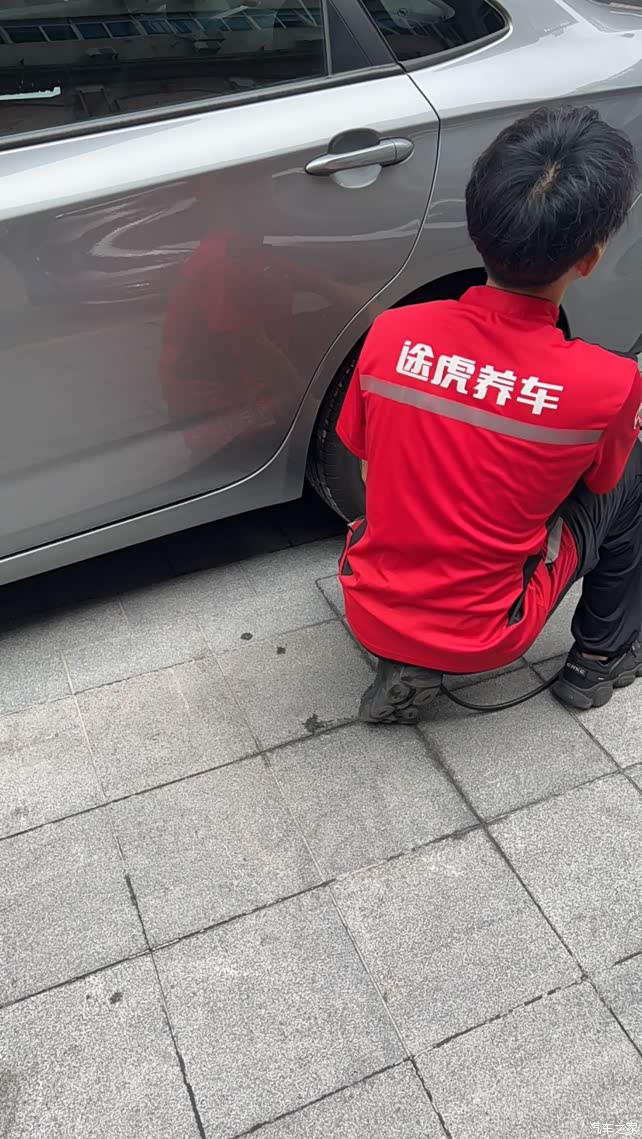 花了150请了个师傅指导我把车开回去,第一次上路只能说是一言难尽,上小高速了结果发现车上一颠一颠的,仔细一看4个胎压都没什么气,当时就很生气,4S店交车时候不好好检查吗。后面只能控制速度40左右找了一家最近的途虎打气。