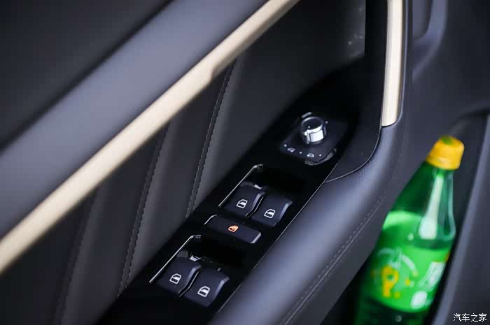 四面玻璃都支持一键升降,使用起来很方便,中间的是锁止键,车里有小孩不用害怕乱按。