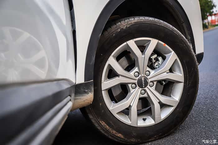 轮毂是18寸,造型没有当时看的试驾车的双色设计好看,不过看上去很粗壮,有结实感。