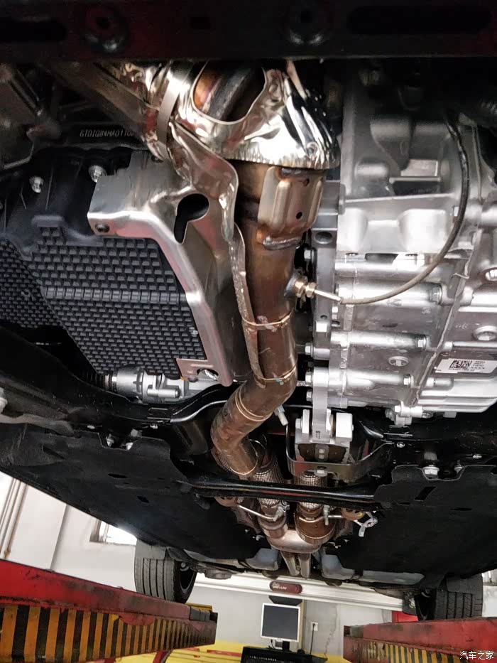 排气管左边这个黑色塑料是油底壳吗?还是没啥改变啊。老毛病