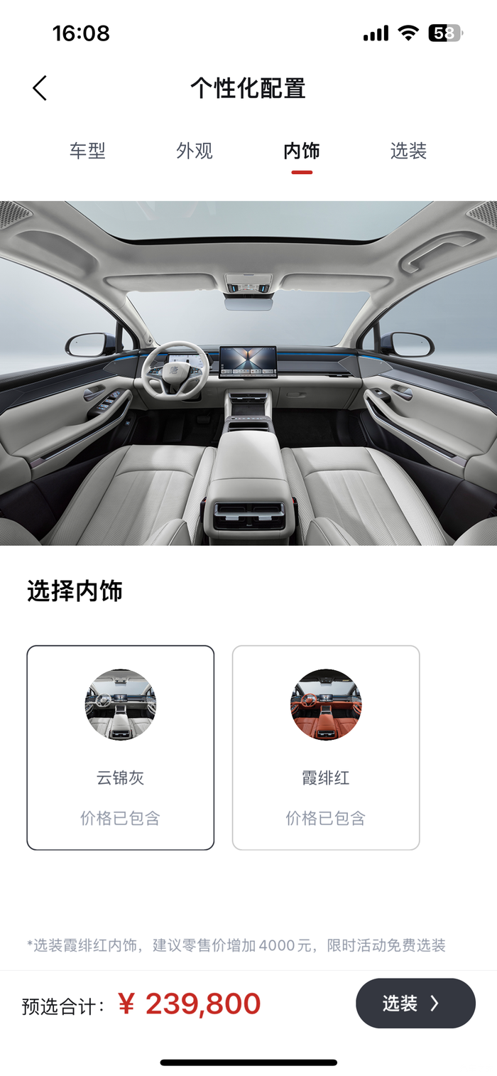 计划今年中旬换车,娃下半年准备到来,给自己换辆奶爸车,唐L上市之后挺心动的,也算是在可接受的预期价格范围,带老婆去看过实车,也挺满意,虽说对于她来说这个车巨大,但是也同意买,因为给我洗脑宣传什么自动泊车啊啥的,就不担心大车停车难的问题了。只不过呢,这个什么霞飞红内饰,乍一看还行,但是个人而言觉得不耐看,老婆也不太喜欢这个颜色的内饰。所以想问下各位大佬们有没有定了或者是看过云锦灰内饰的实车?望多发些实车照片来鉴赏一下,王朝App上只有这么一张,这个白顶让我也有点难接受,因为我现在的16款宋也是白顶,我开车又喜欢开窗,哇,乌漆嘛黑的现在。大哥们动动你们发财的双手,上传点云锦灰实车内饰来看一看,准备观望这一两个月的销量和大家试驾的测评,就下手了。计划是外黑内灰,如果灰色不如意的话,再考虑这个霞飞红。再次小弟先感谢各位大哥!!!