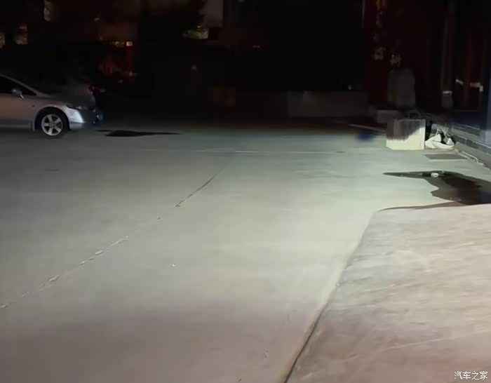 原厂大灯无专业透镜加持,光线发散严重,无清晰切线,呈现“中心亮、两侧暗”的尴尬局面,路边路肩、人行道的障碍物难以识别,形成明显视野盲区。