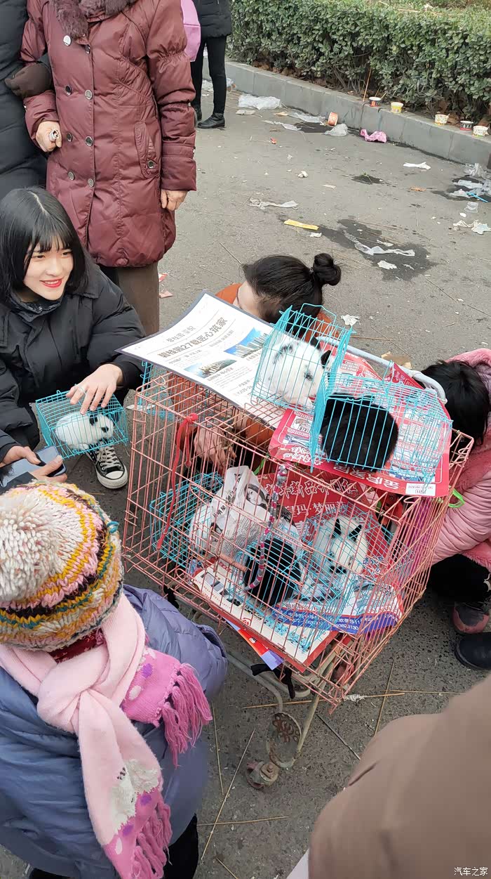 一个小美女看见可爱的小白兔走不动了,正在和商家讨价还价