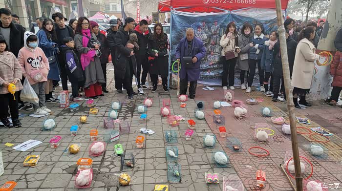 庙会独有的套圈游戏,吃饱喝足,活动一下