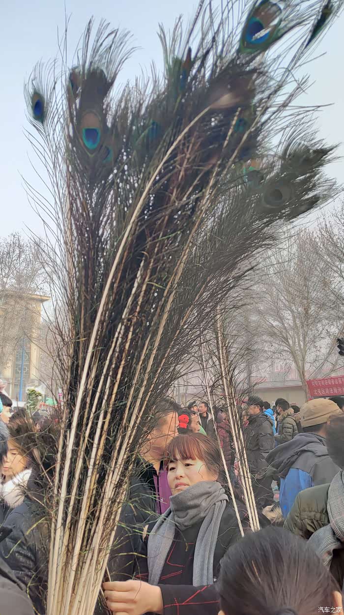 庙会上还有孔雀羽毛,寓意吉祥如“翼”,插在家里也是非常好看的装饰品