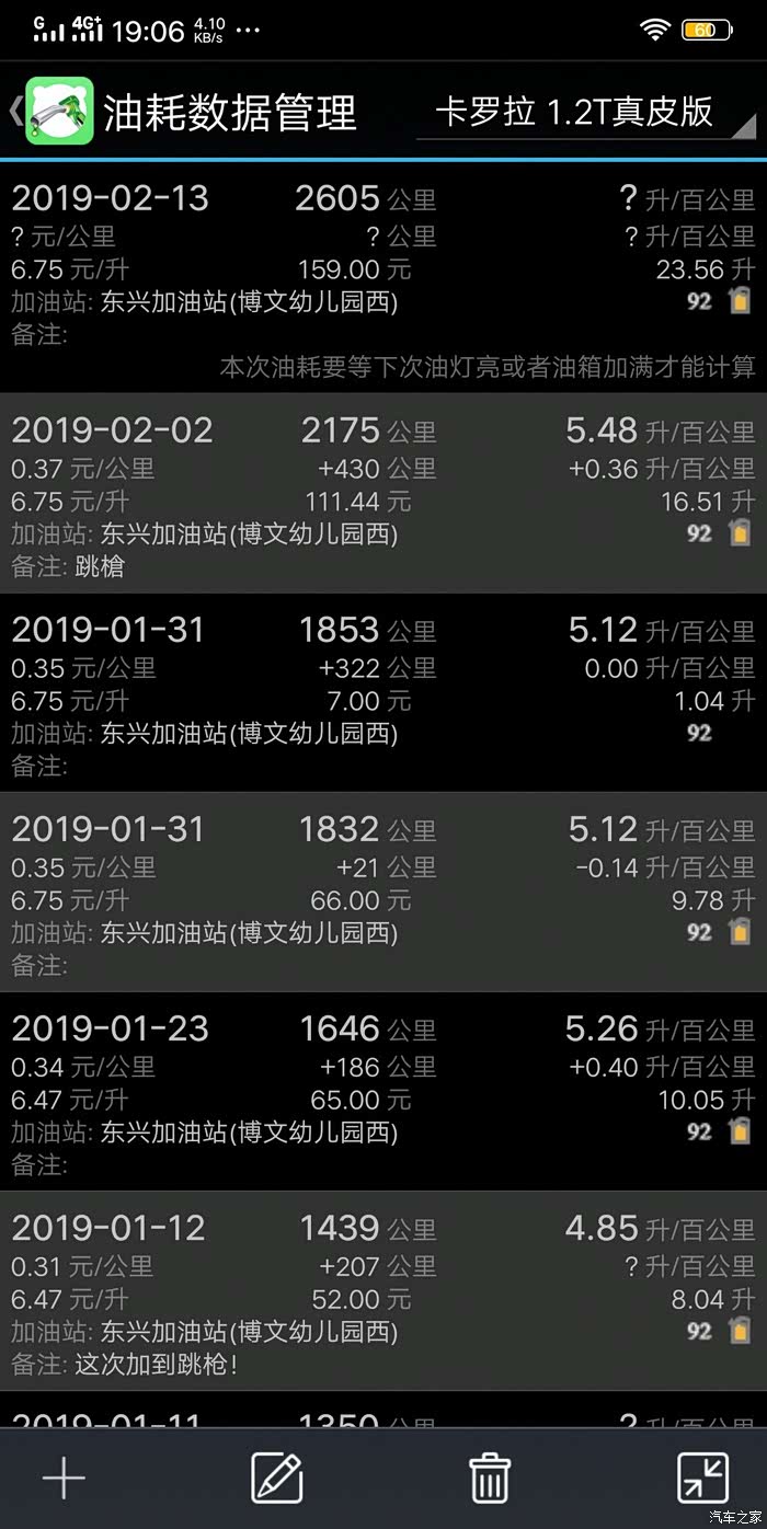 最近几次加满油实测的小熊油耗表,这么多次,我觉得最后那次5.48个油才是最准的!