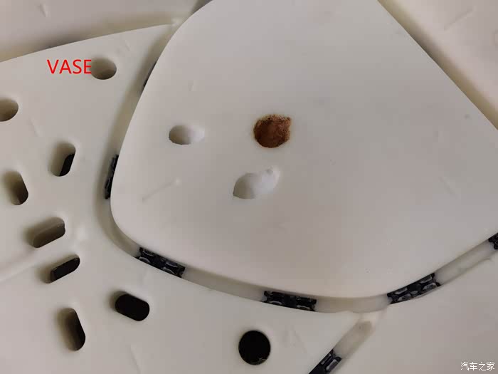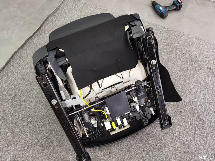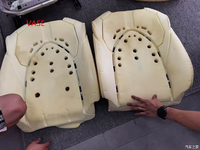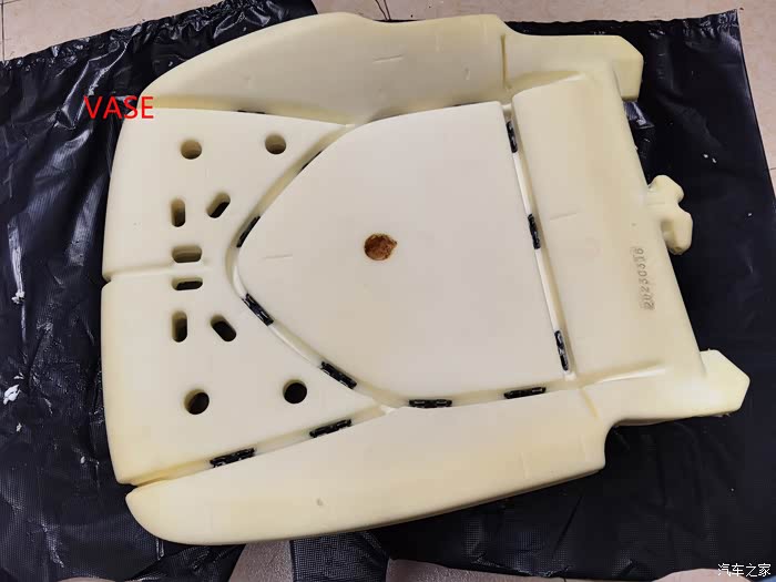 切开靠背通风黑色蒙布。可以看见原厂风道与吸风孔设计