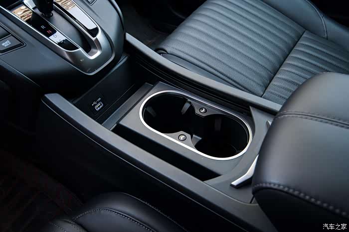 如果说本田在空间利用率上承认自己第二,那应该没人敢说自己第一,我在这里指的是空间利用率,而不是单纯的大,前排杯架可以升起来也可以降下去,旁边一个放手机和钱包的专属储物槽,盖板的设计也非常有高档感,中央扶手下面有个无线充电,再下面才是储物空间,这利用方案简直绝了。不仅如此,眼镜盒还有个后排后视镜的设计,如果后排坐着孩子老人,让你开车的时候也可以随时观察后排情况。