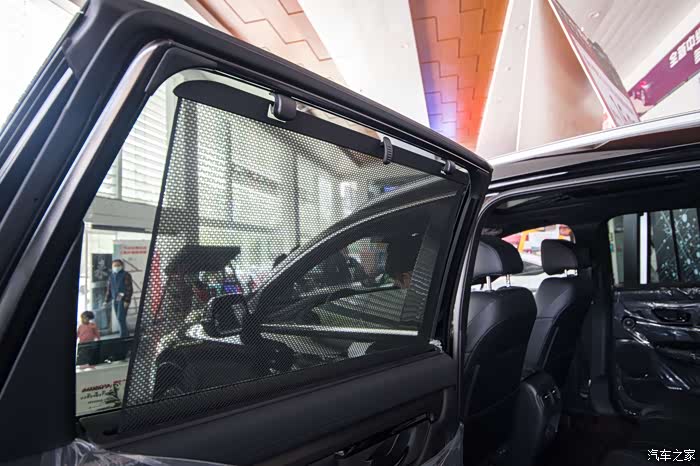 第三,顶配后排遮阳帘也有配备,扶手还会搭载一个小屏幕,来控制多媒体和天窗部分;