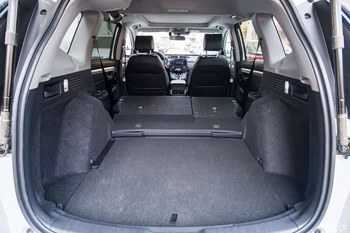 皓影的后备箱绝对算得上同级别比较大的水平,再加上本田的出色设计,让后备箱不仅大,而且好用,至少可以放平。两个硕大的液压杆支撑着电动后备箱带脚踢功能。这功能让双手拿着东西掏钥匙的画面一去不复返,不用尴尬了。汽油版有备胎,混动版有补胎液。