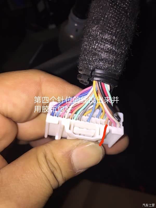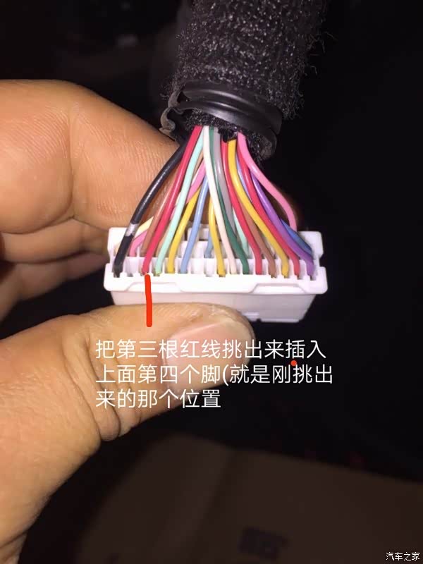 找到这个大插头,把这根乳色线挑出来不需要用了,再把背面红色线挑出来