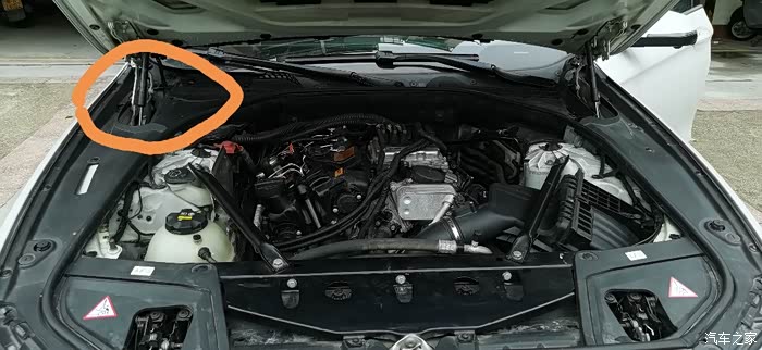 第二,异味通道。机舱异毕竟在驾驶室外,异味是如何串到室内呢。这里要感谢之前多位车友总结,发现5系(貌似3系也是)的外循环进气口居然是在机舱内部的左上角😩,紧挨着发动机舱,这个布局设计,大大增加了串味的风险。目前大多数车型的进气口是在挡风玻璃的正下方,与发动机舱有比较好的隔离。正是这个设计,5系不能像其他车一样,高速行驶时,享受打开外循环让外面的风灌进来的舒畅。(因为进气腔在机盖下)