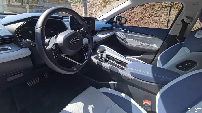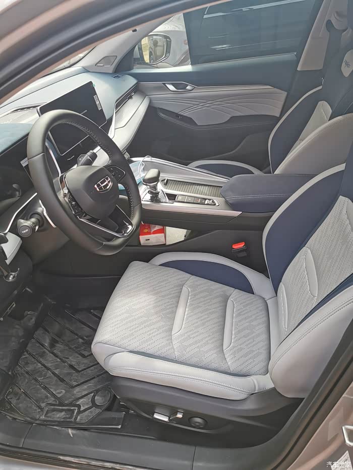 星瑞的内饰采用的是吉利全新的设计风格,主要色调以蓝白搭配为主,让整车内饰显得科幻且整洁,仪表台由左到右采用流线型的出风口设计,充满几何设计感,并且在组合仪表罩、扶手箱盖以及头枕多出采用翻毛皮材质,质感较好,车内氛围灯也是可以多色调节,并且支持律动,真正发挥到了氛围灯的作用。车机支持4G网络并且终身免流量,同时也支持连接WIFI或者共享热点,满足日常的使用需求。