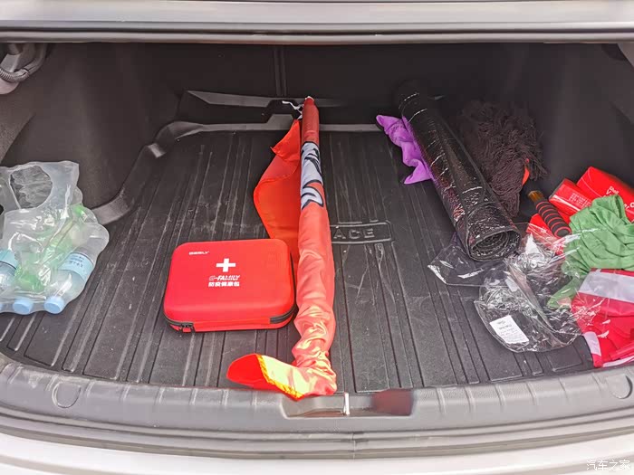 车内储物空间值得一提的是副仪表下部的储物空间以及后备箱空间。前排储物需求一直是比较大的,星瑞的副仪表造型下部镂空设计可以增加一大部分储物空间,平时放一包抽纸或者一些零碎物件都很实用;后备箱门槛较低,搬东西时比较方便,容积亲测放5个商务旅行箱没有问题,如图我放了一根旗杆在车里,空间可想而知。