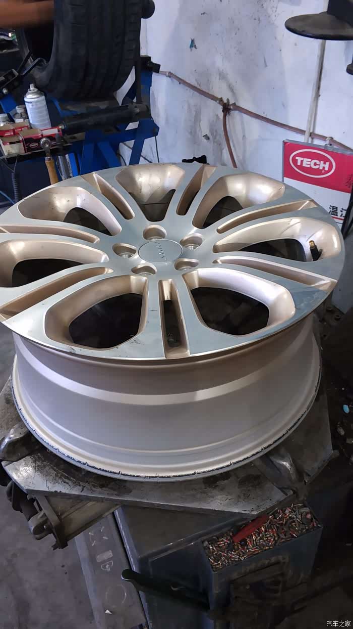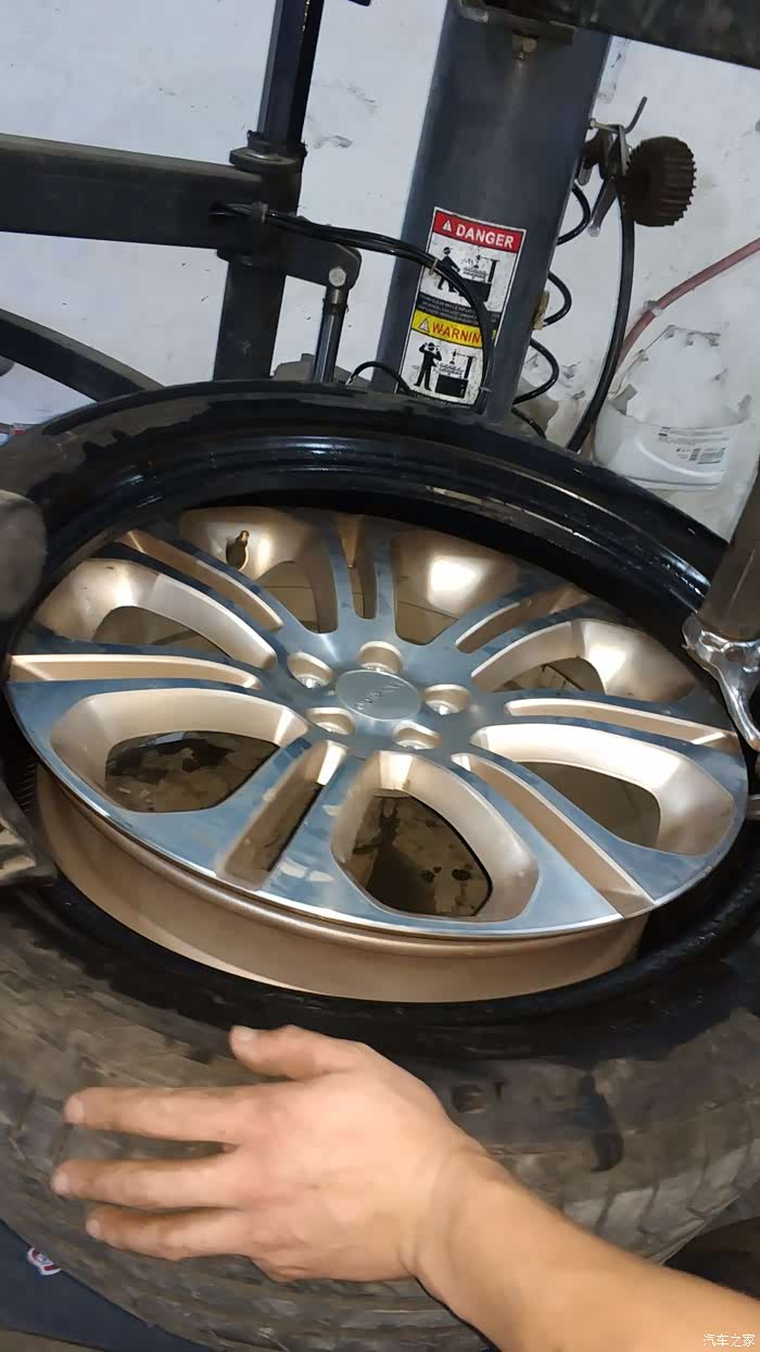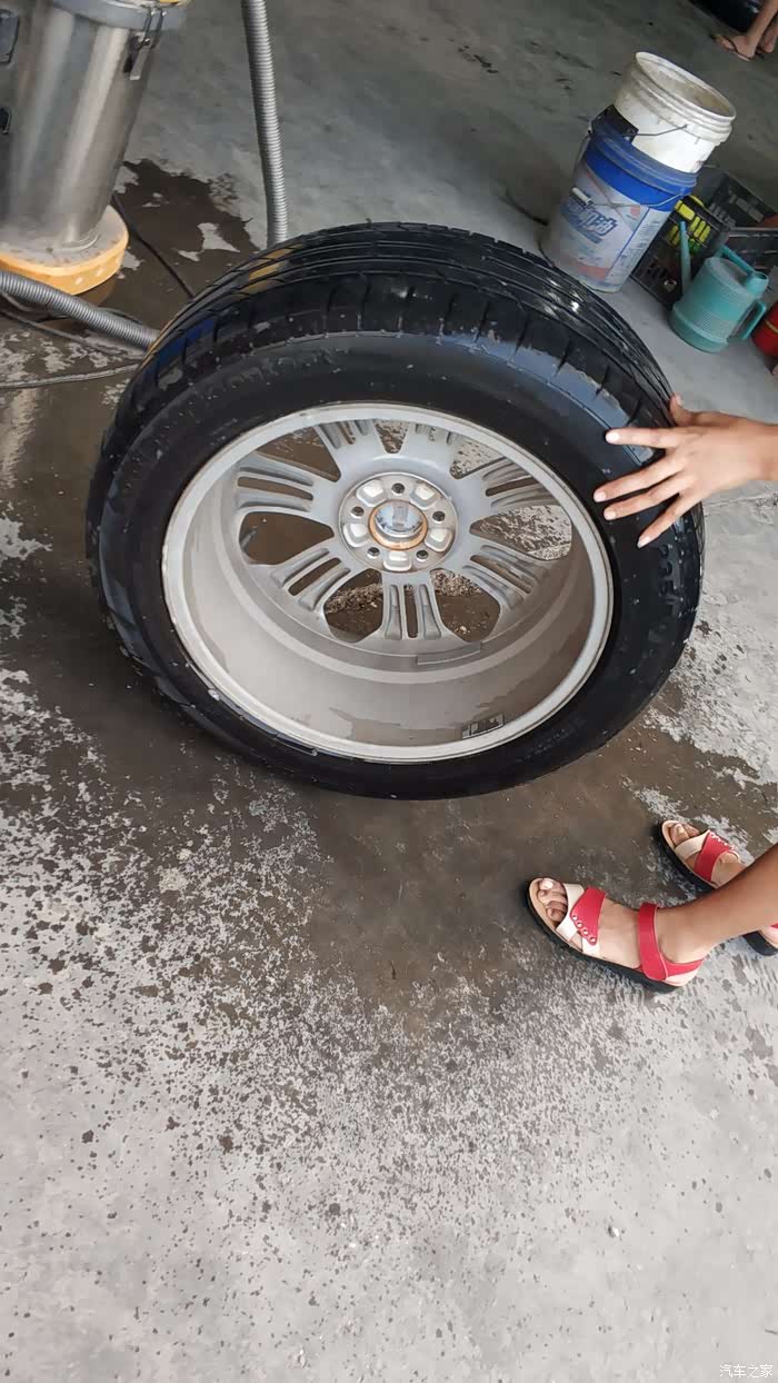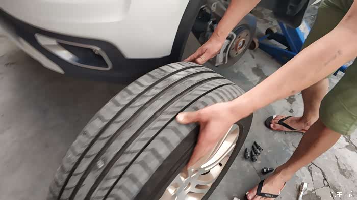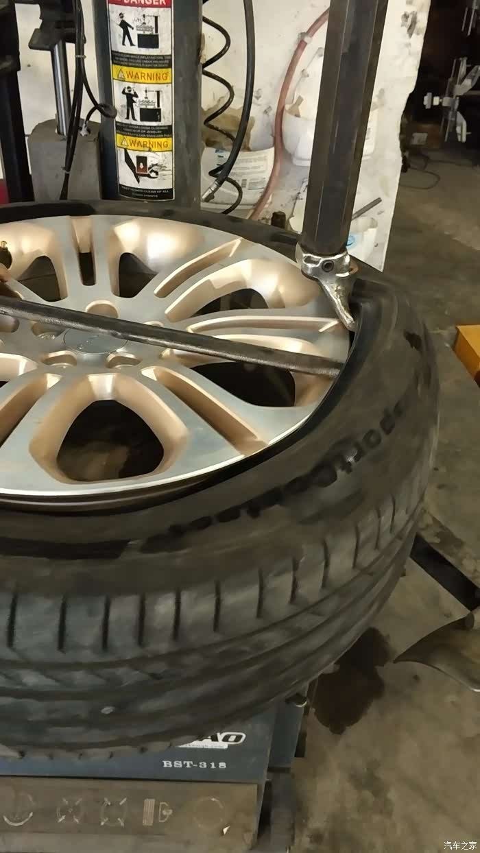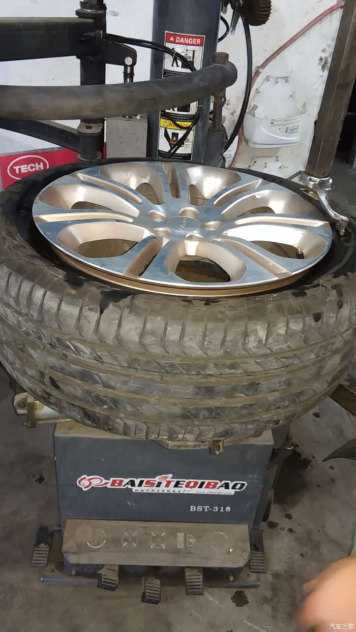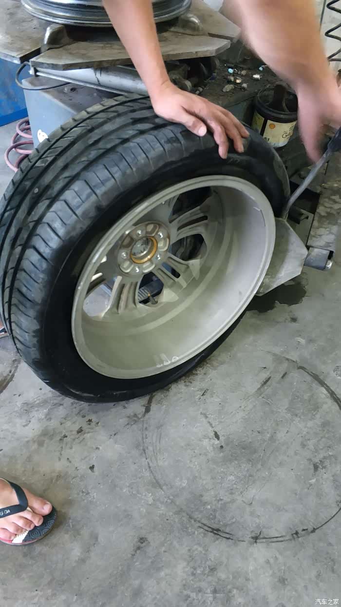 轮胎基本看不出漏气变形的痕迹,真的佩服博世的9.3系统,把轮胎取下后,师傅看了下气压,只少了很少一点点,这足可以说明博世ESP9.3的灵敏