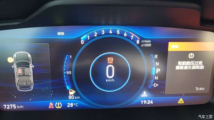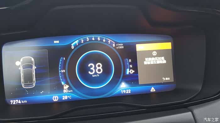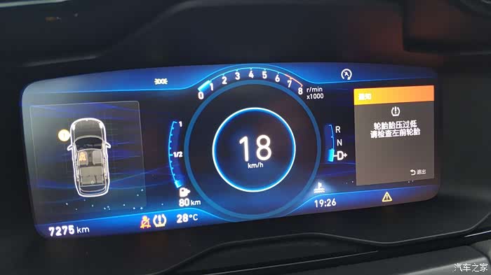就在我刚从一个建筑工地出来不远处,还在行驶中,仪表盘就亮起了提示,领克01的胎压监测是通过车身稳定系统,来计算四个轮胎的行进是否一致来判断是否轮胎缺气