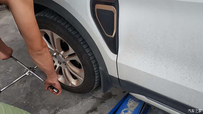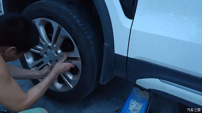 马上停下车来看看左前轮