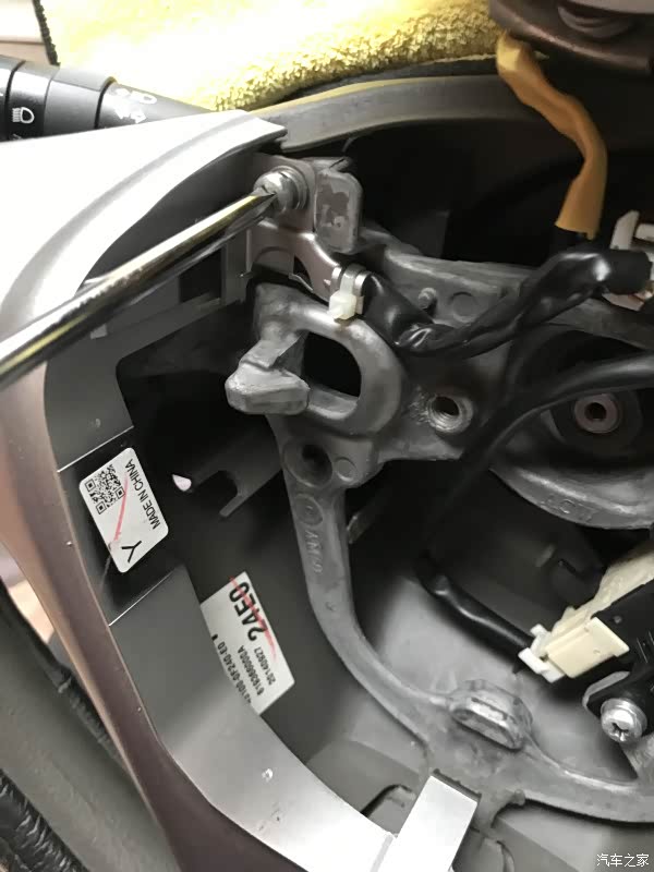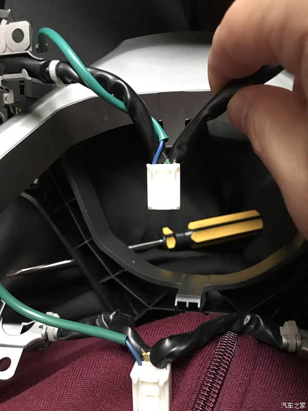 把新的开关面板固定到方向盘骨架上,拧螺丝固定,插头还是无缝对接