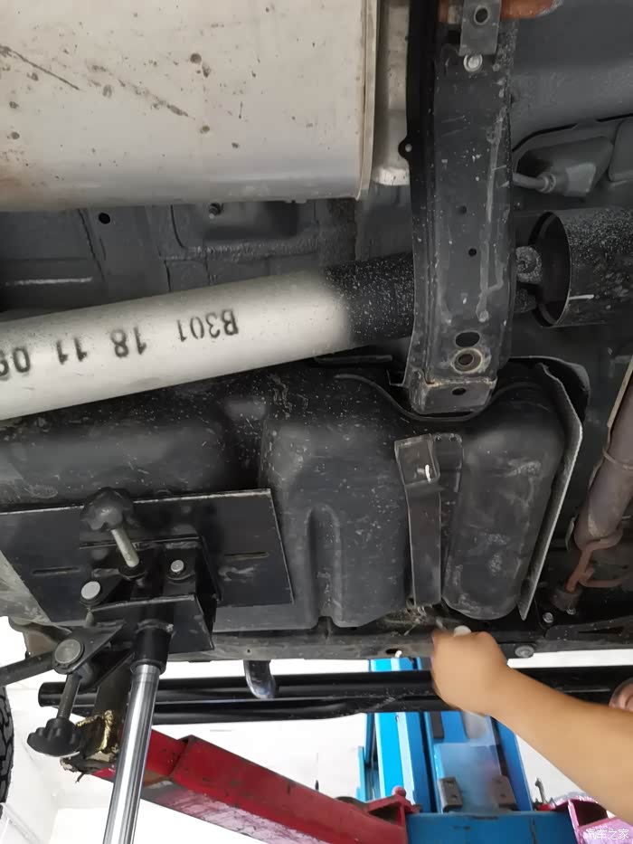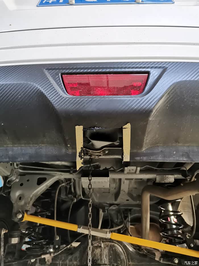 后拖车杠选择的是这个位置,破坏最小,而且不用拆后护板,直接在下面隐藏安装