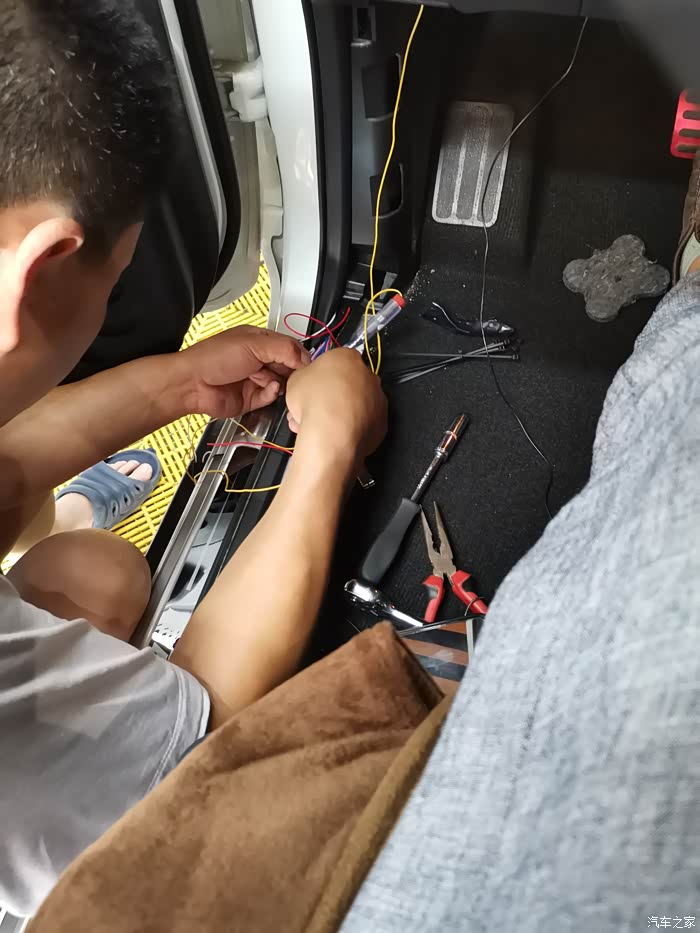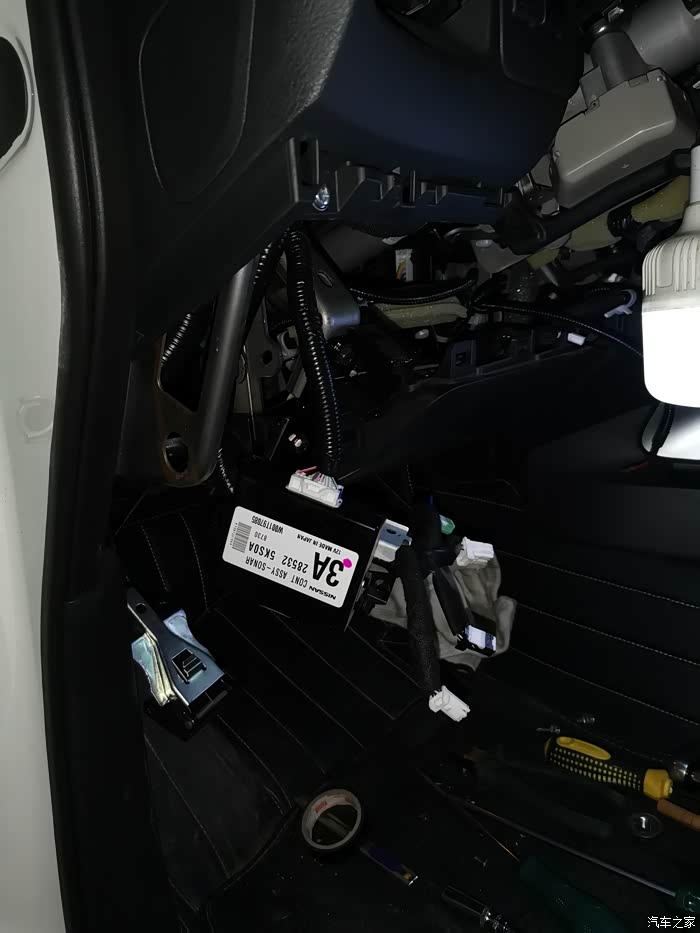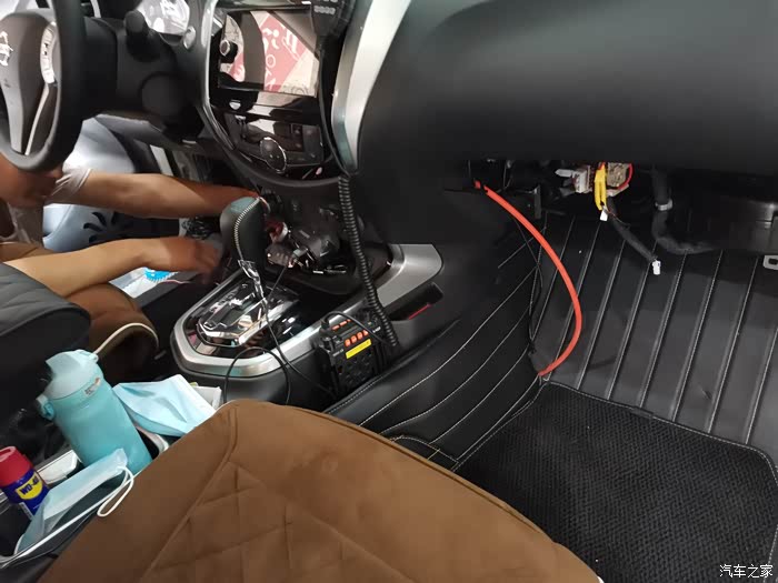 开孔本来可以自己弄,看到师傅的手艺和水平我放心了,接线比较麻烦,这个我搞不了,之前的野帝我是自己装的后雷达,接倒车灯线,比较简单。途达尾灯非常不好拍,最后师傅放弃了,从驾驶仓下面的一堆线束里一根一根找倒车灯线接的。