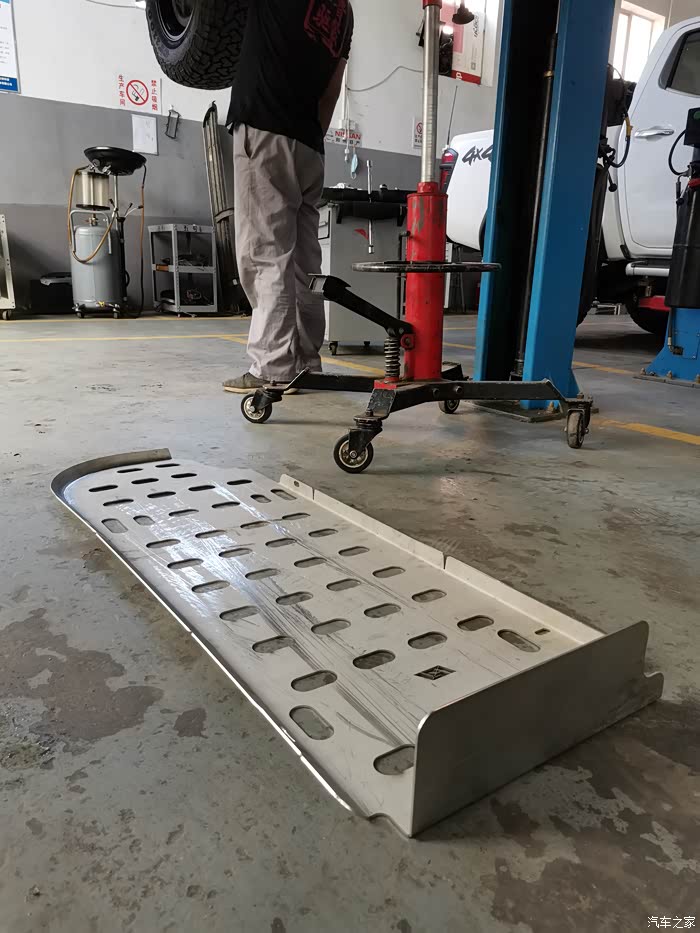 鲁大师交代师傅,护板有2处需要切割,为了极限情况考虑,不会碰到传动轴,富余量大一些
