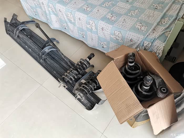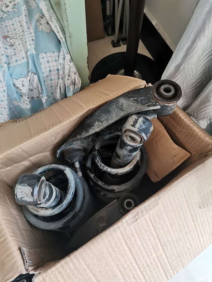 之前拆下来的减震收拾好放单位,家里没地方了