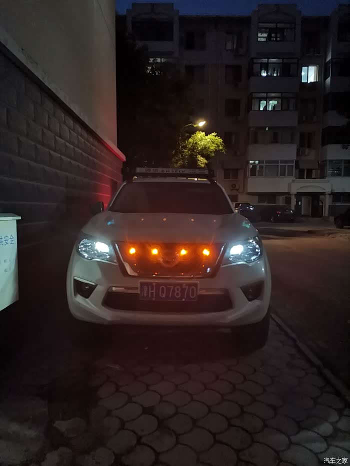 两边再接两个射灯,属于大聚光发散光源,野外跑夜路用,黄光穿透力好一点,平时不装拿下来放车里,有防水插头