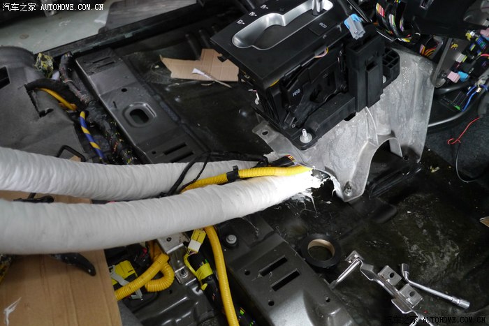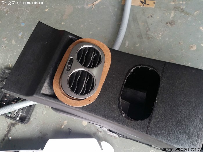 07-尝试接管-扶手箱前孔(这个孔,本来就是泰国版的风道口,遮盖面板去掉,本来就有孔。。哎。。)