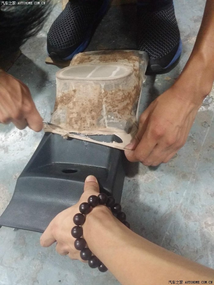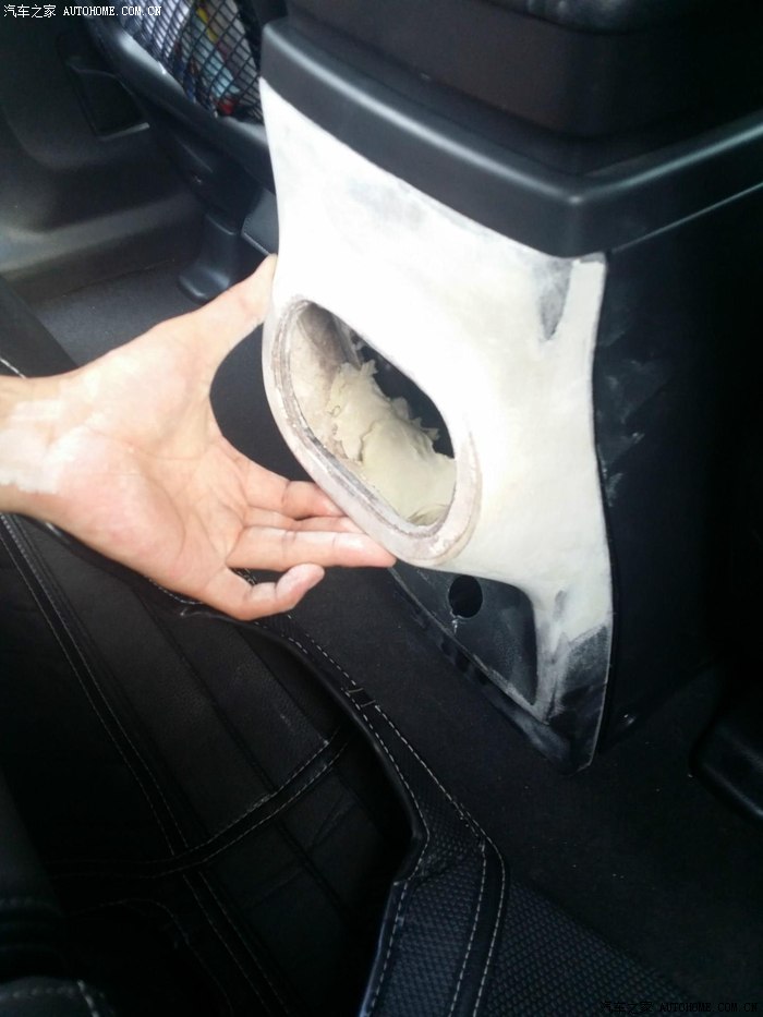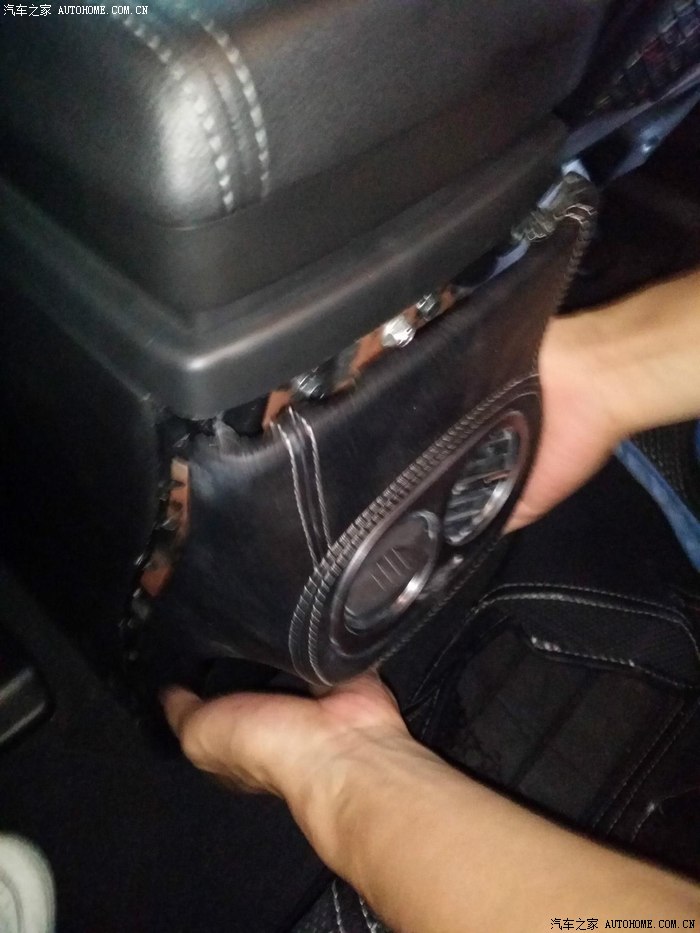 40-扶手箱后面板拆除送去缝皮前(提前享受。。呵呵。。这个怪洞。。呵呵!!)