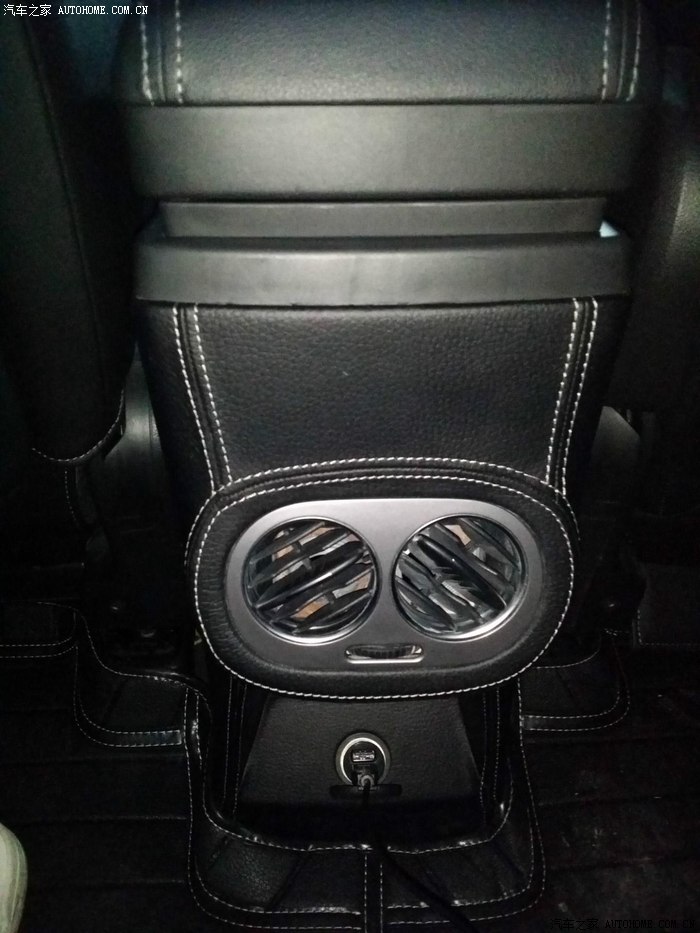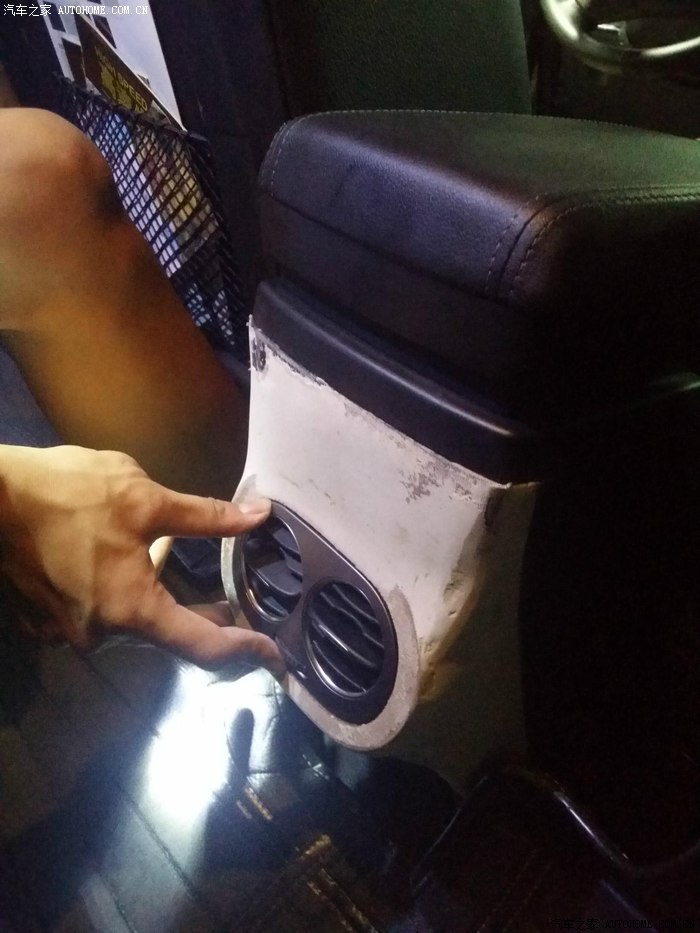 47-安装后效果4(后排点烟口使用正常。。而且,出风口角度和位置,预留了2排中间乘客的放脚位置)