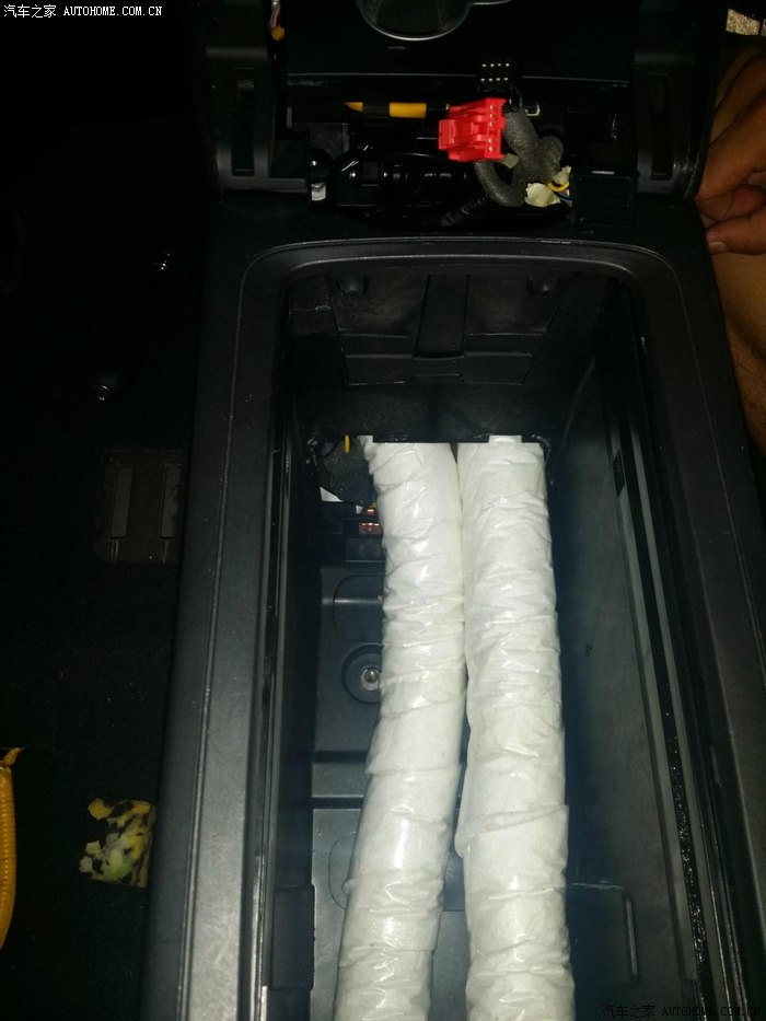 18-通风管道包保温(这个,我觉得有必要。。可以让制冷和制热都不会有太多的流失。。不过,管道不长,其实流失也不多。。不过作为一名建筑师,这样的做法,也是有必要的。。而且对扶手箱内部储存东西也不影响)